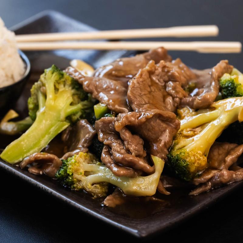 Sliced white meat chicken or beef, sautéed with a variety of vegetables in our hearty sweet Hunan sauce
